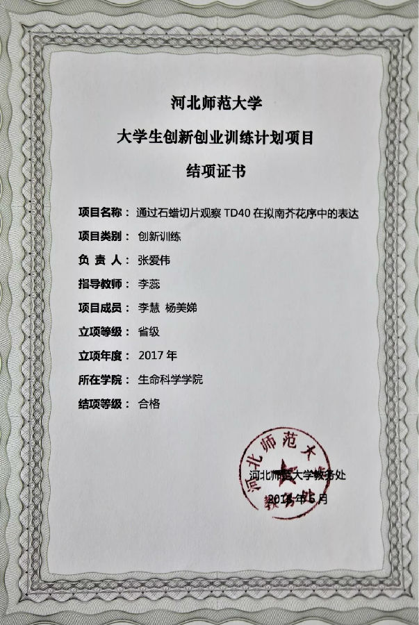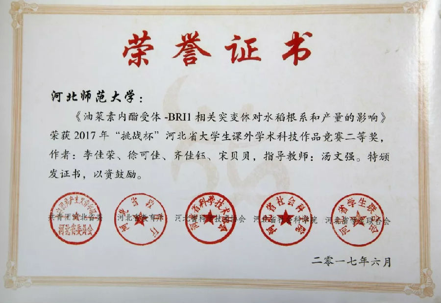 周敏,王森杨,谷瑶瑶 | 2012级 | 2015年 | 河北省二等奖 | 省教育厅 |