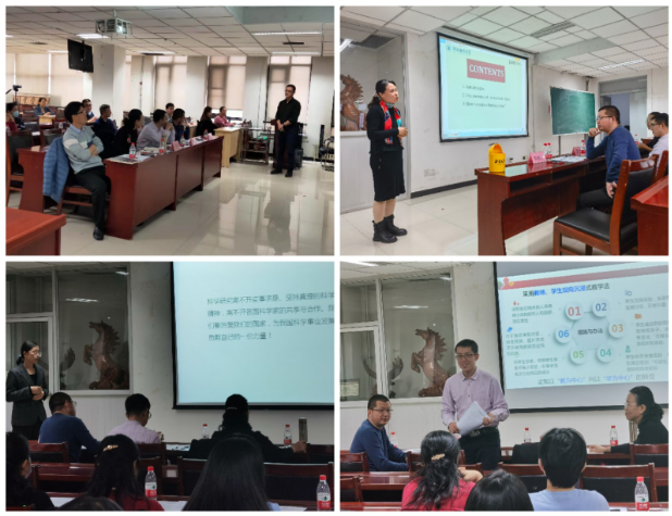 参赛的12名教师分别配备有指导教师。比赛过程限时12分钟,教学技能大赛设置说课、知识点讲解及提问环节,参加课程思政教学比赛教师充分梳理课程德育元素,并选择专题进行讲解。专家评委依据教学设计及课堂教学过程、教学创新内容、思政内容等方面进行现场打分。各参赛教师精心准备,以扎实的专业知识、多样的教学模式以及丰富的思政内容,充分展示了其教学能力和教学创新水平。最终白蛟腾、张倩两位老师分别获得教学技能组一等奖和课程思政组一等奖。刘敬华教授对本次比赛进行了精彩点评,充分肯定了参赛教师的专业素养及教学创新能力;曹鹏浩副处长高度肯定此次教学比赛对提升常规教学效果和教学质量具有重要推动作用,并解读了学校针对本科教学改革制定的相关制度及措施。