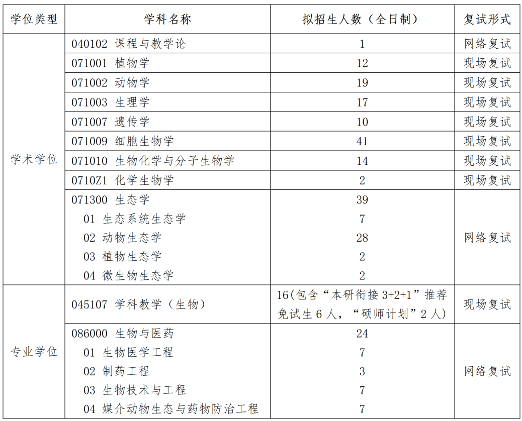 河北师范大学生命科学学院2026年硕士研究生复试工作实施方案(一志愿)通知